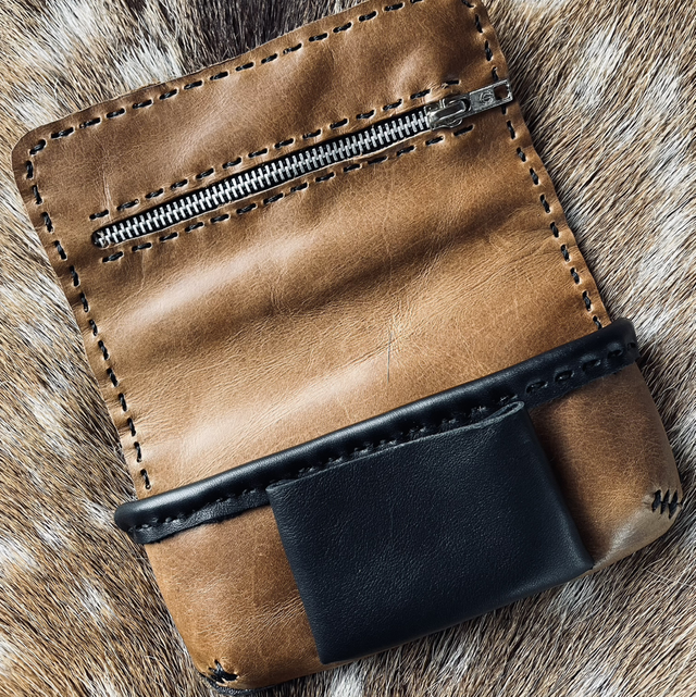 Blague à tabac en cuir issus de chutes et d’invendus.