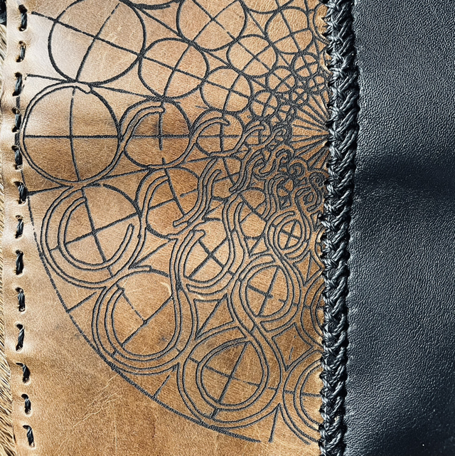 Motif dessiné par mes soins et gravé au laser à l’atelier.