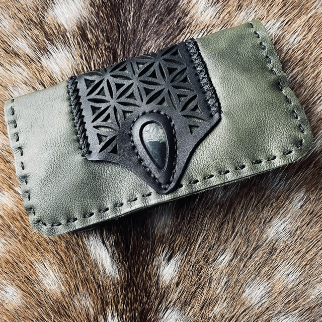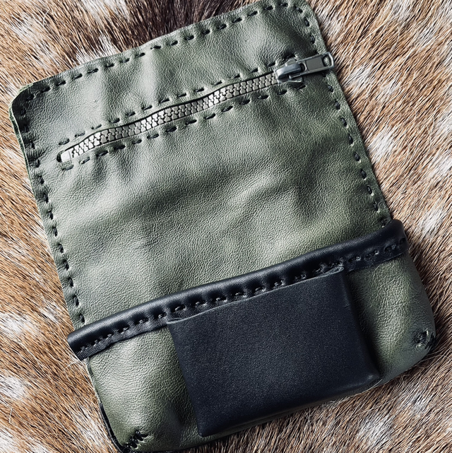 Blague à tabac en cuir issus de chutes et d’invendus.